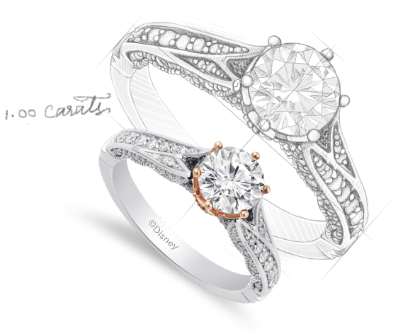 Our designs are inspired by the adventures of all your favorite Disney Princesses. Enchanted Disney Fine Jewelry ring, necklace, earring and bracelet designs are inspired by castles, crowns, and enchanting destinations.
